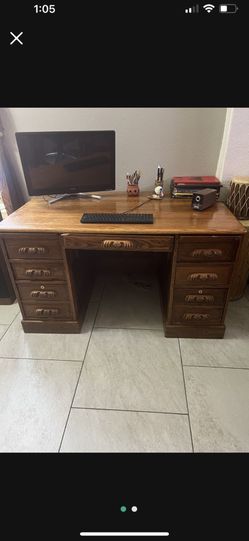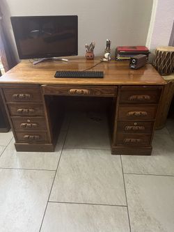 Fino Y Hermoso Escritorio De Madera Sólida, Grande Y Pesado, Tiene La Parte Trasera Hermosamente Labrada En Muy Buenas Condiciones $300.00 Dólares $30$300El Paso, TX