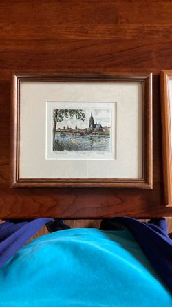 Framed And Matted Pen And Ink Of River Running By Frankfurt And A Second Pen And Ink Of Gabled And Turreted Antique 4 And 5 Story Buildings$39Everett, WA
