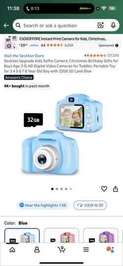 Seckton Upgrade Kids Selfie Camera, Christmas Birthday Gifts for Kids Age 3-9$20Chicago, IL
