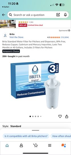 Brita Standard Water Filter for Pitchers and Dispensers, BPA-Free, Reduces Copper, Cadmium and Mercury Impurities, Lasts Two Months or 40 Gallons, Inc$15Chicago, IL