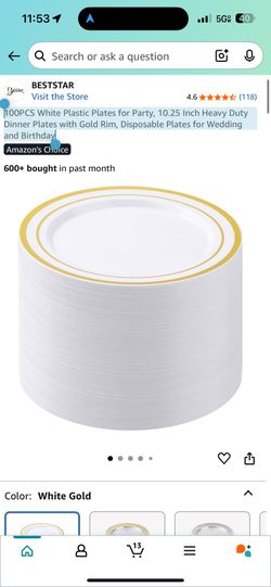 100PCS White Plastic Plates for Party, 10.25 Inch Heavy Duty Dinner Plates with Gold Rim, Disposable Plates for Wedding and Birthday$30Chicago, IL