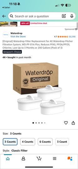 Waterdrop Filter Replacement for All Waterdrop Pitcher Filtration System, WD-PF-01A Plus, Reduces PFAS, PFOA/PFOS, Chlorine, Last Up to 3 Months or 20$27Chicago, IL