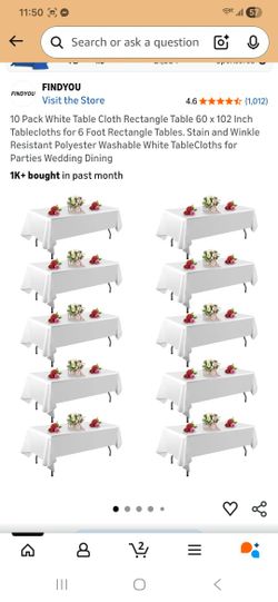 10 Pack White Table Cloth Rectangle Table 60 x 102 Inch Tablecloths for 6 Foot Rectangle Tables. Stain and Winkle Resistant Polyester Washable White T$35Houston, TX