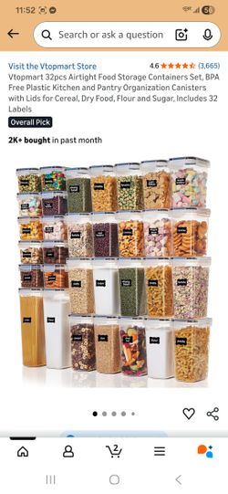 Vtopmart 32pcs Airtight Food Storage Containers Set, BPA Free Plastic Kitchen and Pantry Organization Canisters with Lids for Cereal, Dry Food, Flour $35Houston, TX