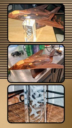 F-117 Nighthawk Jet Mahogany Wood Desktop Airplane Model & Laser Engraved Crystal Paperweight with 3 Jets$45Hemet, CA