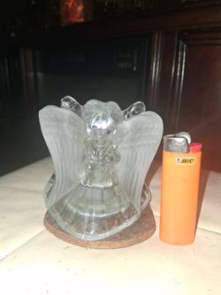 Vintage Crystal Candle Holder with 3 angels holding a harp, a lute and a songbook.$10Hemet, CA
