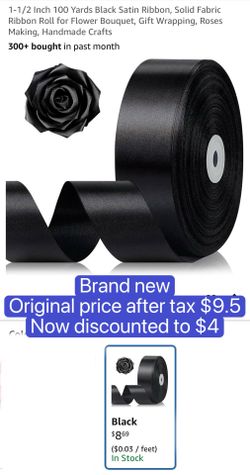 1-1/2 Inch 100 Yards Black Satin Ribbon, Solid Fabric Ribbon Roll for Flower Bouquet, Gift Wrapping, Roses Making, Handmade Crafts$4San Gabriel, CA