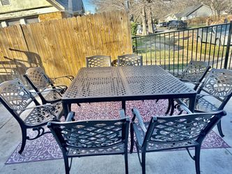 9 Pc Aluminum Outdoor Set, 60β X 60β X L Table And 8 Regular Chairs, Original Bronce Color , Excellent Conditions $1,200Fort Worth, TX