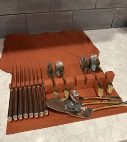 Yamazaki Ramona Gold premium 18/8 stainless steel flatware - 8 each of 5 piece set - MADE IN JAPAN$250Kent, WA