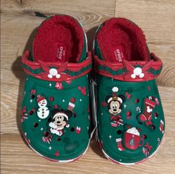 New Disney Lined CROCS Green and Red Holiday lined Clogs with Mickey Mouse and Minnie Mouse$60La Habra Heights, CA