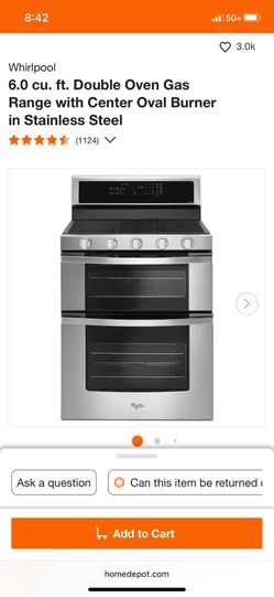 Whirlpool 6.0 cu. ft. Double Oven Gas Range with Center Oval Burner in Stainless Steel$890San Diego, CA