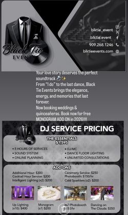 2026 WEDDING AND QUINCEAÑERA BOOKINGS$1,000Grand Terrace, CA