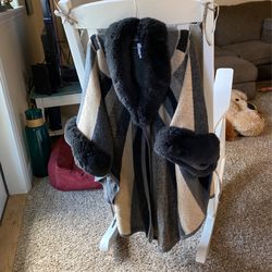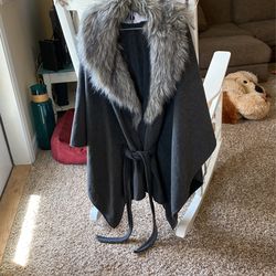 Gray Poncho Style Jacket With Gray Faux Fur $20West Richland, WA