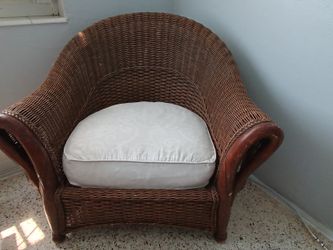 Solid Wood, Carved Wicker Chair With Goose Feather Cushion $200Sunny Isles Beach, FL