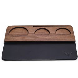 KNODOS Espresso Mat 58mm – Walnut & Leather Coffee Tamping Mat for Portafilter and Espresso Tools