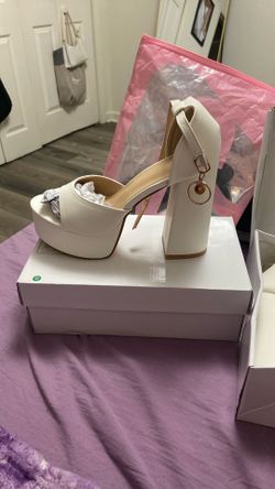 White Chunky Heel Hollow Out Women's Sandals$65Riverdale, GA