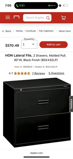 HON Lateral File, 2 Drawers, Molded Pull, 30"W, Black Finish (BSX432LP)$100Downey, CA