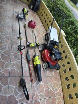 Self-propelled TORO lawnmower, RYOBI 4 CYCLE, Hedge Trimmer, Edger, Blower, Polesaw With Long Extension Stick All For $ 640$640Miramar, FL