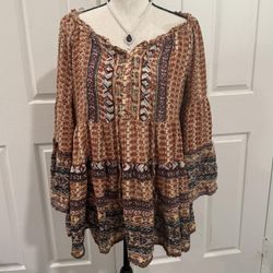 Good Condition | S Angie Multicoloured boho blouse with bell sleeves and tie front. $25Corona, CA