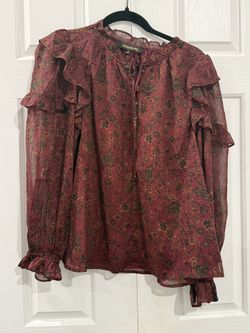 New | S Sugarlips Maroon floral blouse with ruffles and tie neck $25Corona, CA