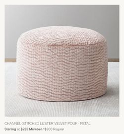 CHANNEL-STITCHED LUSTER VELVET POUF - Petal$100Laguna Beach, CA
