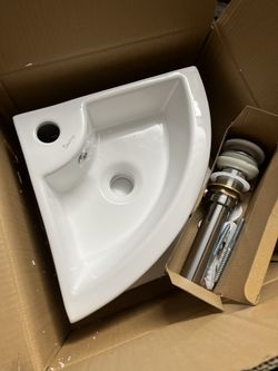 Davivy Corner Bathroom Sink with Pop Up Drain, White $25El Monte, CA