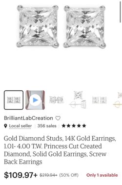 Princess Cut 14k White Gold Stud Earrings$95Las Vegas, NV