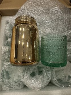 22 Gold Mason Jars and Green Glass Votives$22Las Vegas, NV