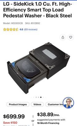 LG 27 in. W 1 cu. ft. Pedestal Front Load Washer Slim DD Motor in Black Steel WD300CB$399Las Vegas, NV