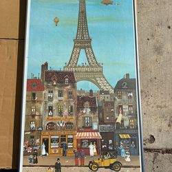 Vintagee Paris Eiffel Tower Painting Print Wall Frame By Michel Delacroix $125San Diego, CA