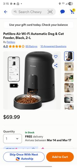 Petlibro Air Wi-Fi Automatic Dog & Cat Feeder, 2-L$50Brenham, TX