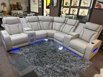 GRAY TAUPE LEATHER POWER RECLINER SECTIONAL WITH SPEAKER SYSTEM $1,700Dallas, TX