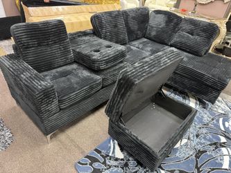 BLACK SOFT CORDUROY SECTIONAL WITH OTTOMAN COUCH SET$700Grand Prairie, TX