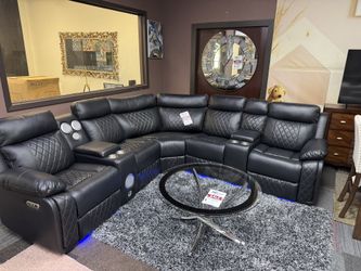 BLACK LEATHER ELECTRIC RECLINER SECTIONAL WITH SPEAKER SYSTEM $1,350Arlington, TX
