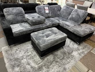 BLACK/GRAY SOFT CORDUROY SECTIONAL WITH OTTOMAN COUCH SET$600Dallas, TX