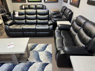 BLACK LEATHER SOFA, LOVESEAT AND CHAIR 3 PIECE MANUAL RECLINER COUCH SET$1,200Dallas, TX