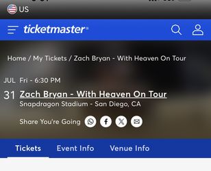 2 GA Zach Bryan Concert Tickets July 31 San Diego$260Chula Vista, CA