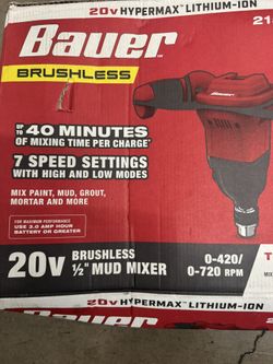 $45 BAUER 20V Brushless Cordless 1/2 in. Mud Mixer, Tool Only - Item 58152$45Artesia, CA