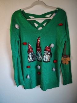 Women size M Green Santa Sweater with Pom Poms NWT$20San Mateo, CA