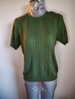 Alfred Dunner Short Sleeve Green Cable Knit Sweater Size PSm