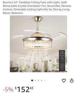 Bavnnro 42'' Fandelier Ceiling Fans with Light, Gold Retractable Crystal$100Lynwood, CA