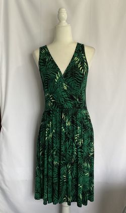 CATHY Women's Size M Midi Sun Dress Sleeveless V-Neck Leafs Print Stretch/Pocket$21Stockton, CA