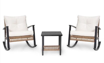 🔥Brand new🔥 3 Pieces Patio Furniture Set, Wicker Rocking Chairs Bistro Set with Coffee Table, Outdoor Furniture for Garden, Balcony, Backyard (Beige$199Bothell, WA