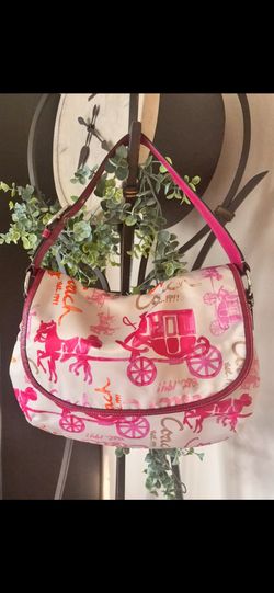 Is A Collectible Authentic Rare 2000’s Coach, Pink Horse And Carriage Hobo Flap$120Orlando, FL