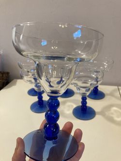 SET of 6 Vintage Libbey "Metropolis" Margarita Glasses w/ Cobalt Blue Bubble Stem Barware Drink Ware $55Fort Lauderdale, FL