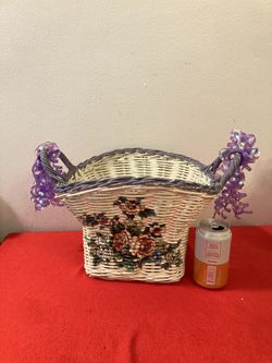 13” x 12” x 9”H White Wicker Basket w/ Floral Design, Purple Handles & Trim | Easter Basket$10Fort Lauderdale, FL