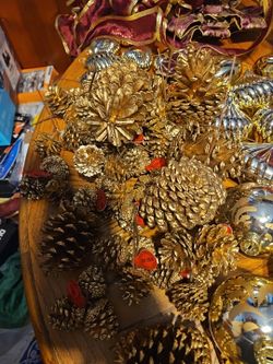 140 Pieces Christmas Tree Themed Decorations Cranberry, Gold, Silver, Burgandy, Poinsetta, Pine Cones$125Detroit, MI