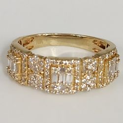 10k Yellow Gold Mult-Row Diamond Cluster Ring -Baguette & Round Diamonds, Statement Band Size 10$950San Diego, CA