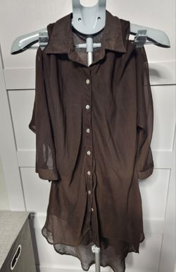 Brown Cold-Shoulder Button-Down Blouse, Womens, (Loose Medium), $15Albuquerque, NM