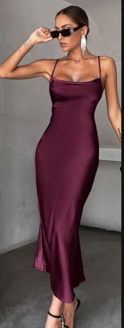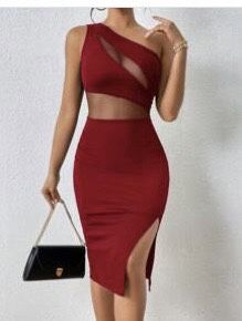 One Shoulder Mesh Insert Split Thigh Dress Burgundy $15Pembroke Pines, FL